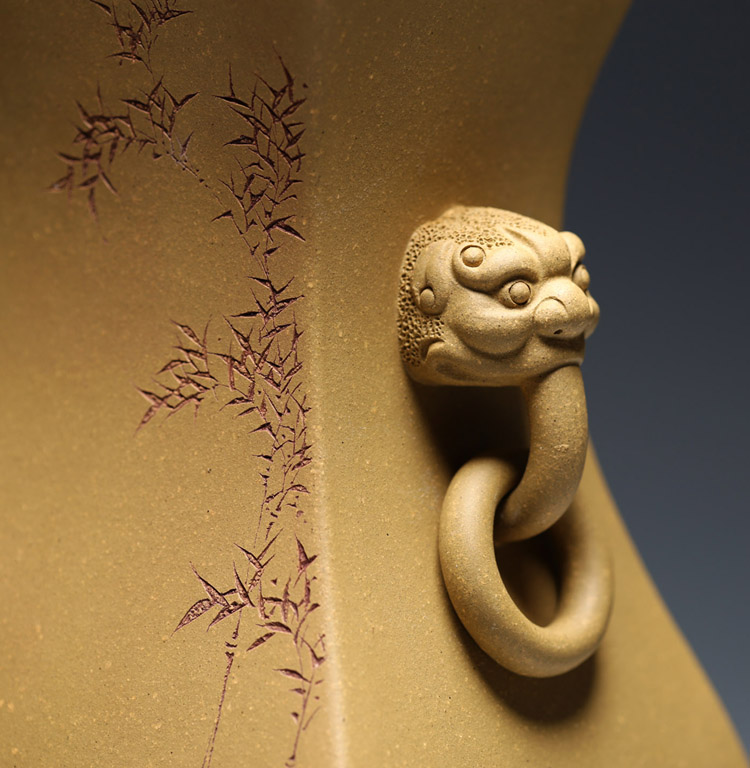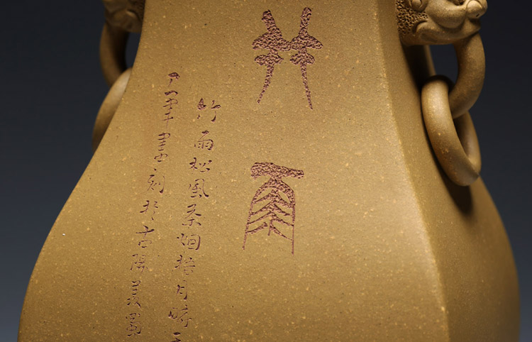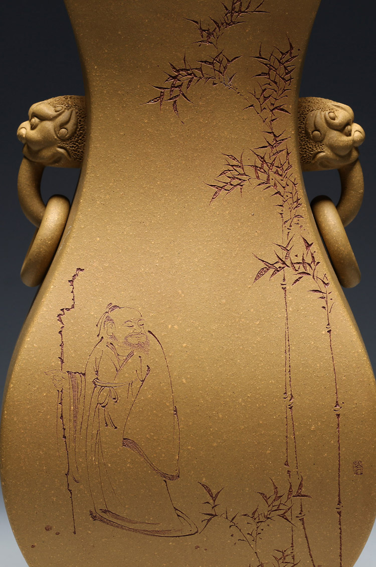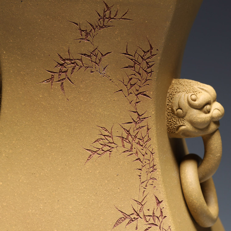 【明理茶艺】 宜兴紫砂壶 王翔(祥)(瑞兽双耳花瓶 )名师手工打造 限量品